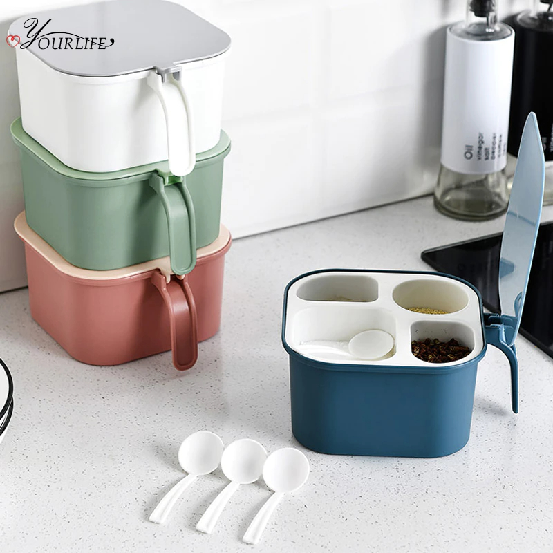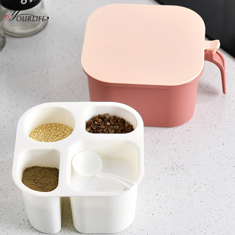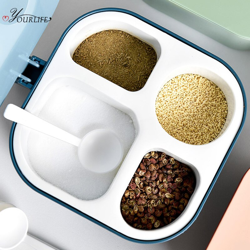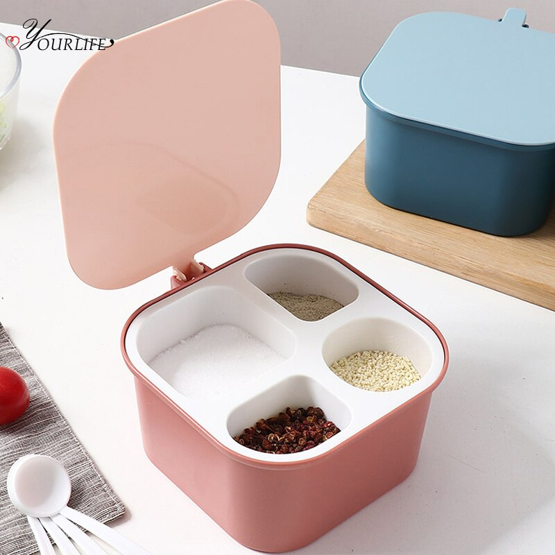 4 Grid Classification Kitchen Spices Storage Box With Spoon